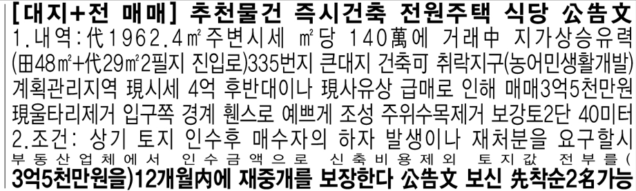 2024년 8월20일 용리 335번지만 1억 5천만원에 급매 입니다.
