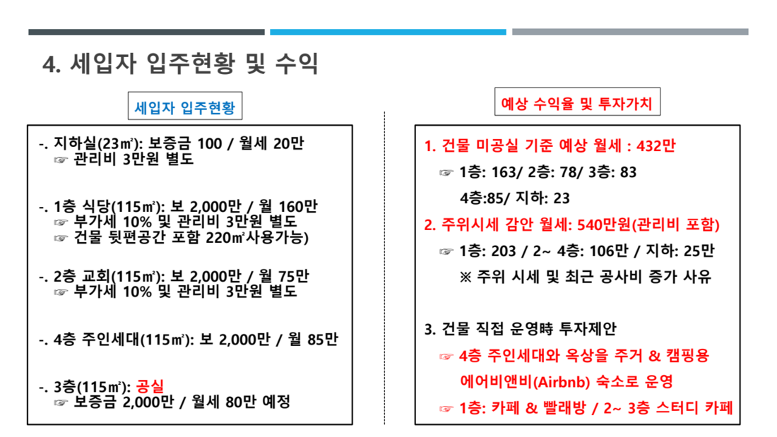 4층중 1층 전용115㎡ 공유면적220.5㎡ 주차2대