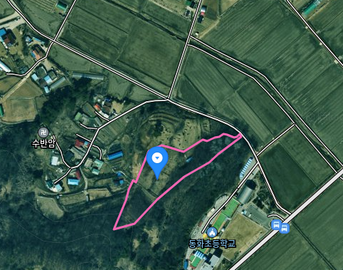 임야 자연녹지 자갈깔린 주차 차량 진입 쉬움 연두색 철문 전기 수도 있음